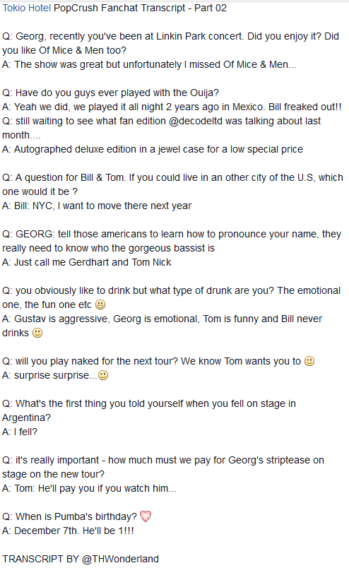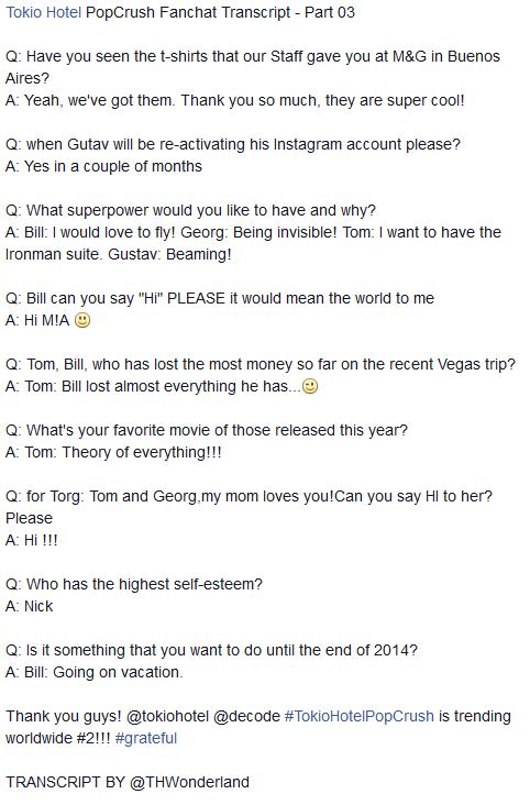- Obrigado, pessoal! @tokiohotel @decodeltd #TokioHotelPopCrush está em segundo lugar nos TT's mundiais! #gratos
