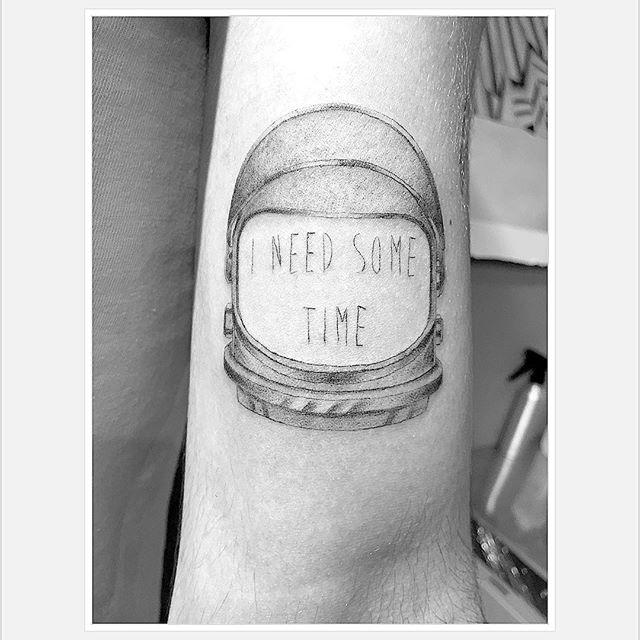 Eu preciso de um tempo... @billkaulitz #agulhaúnica #pretoecinza #losangeles #alemanha #billkaulitz #tokiohotel #espaço #texto #capacete #kaulitz #tatuagem