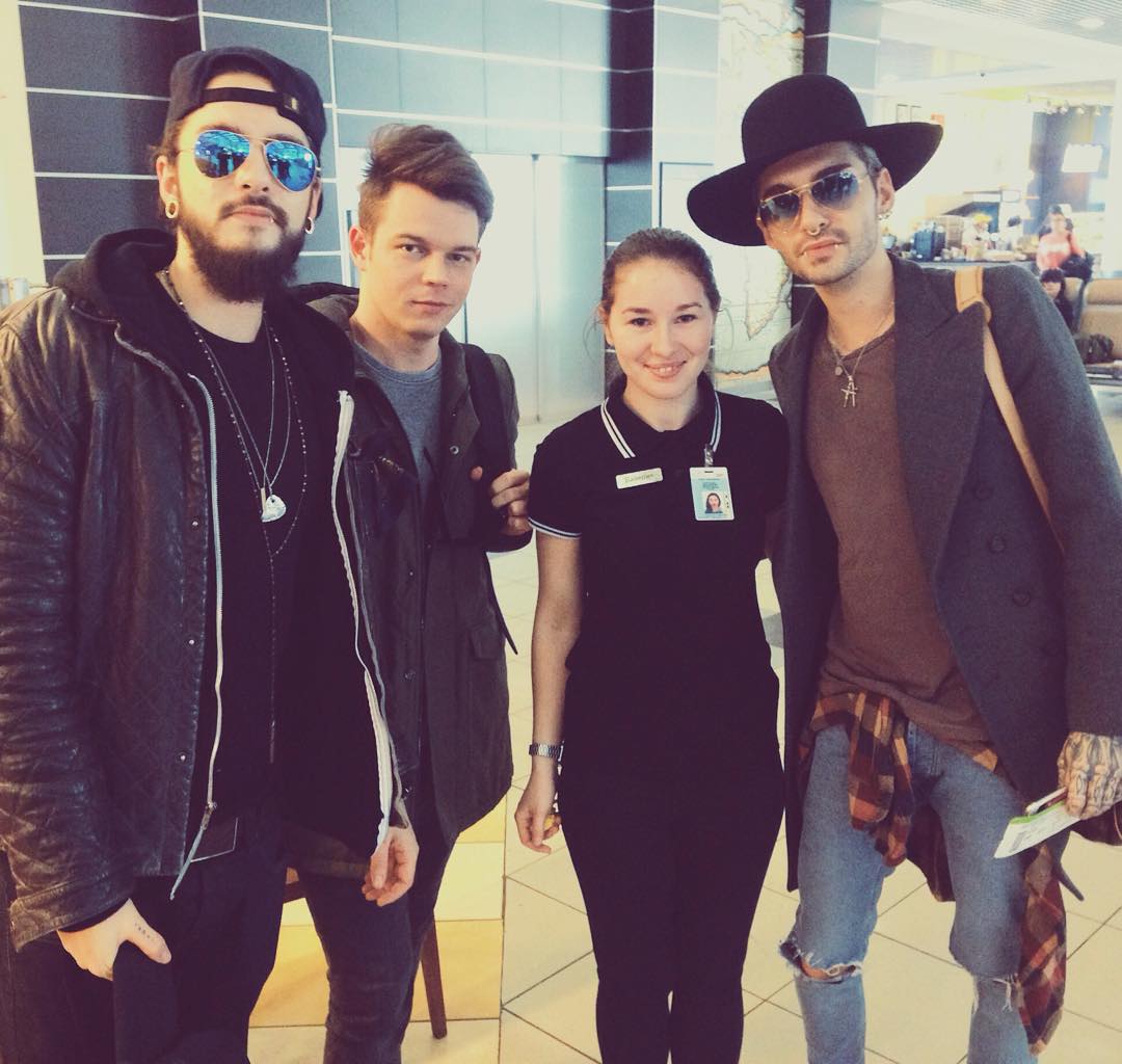 Bill, Tom & Georg com fã - Moscou, Rússia 05.11.2015 - Aeroporto