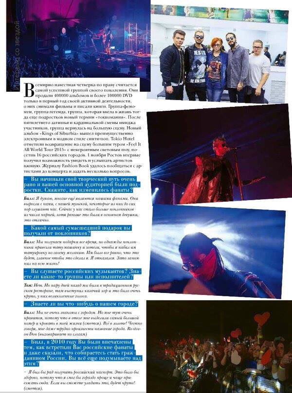 Então... Como foi o ano de 2015 para vocês, Tokio Hotel? Tom: A turnê mundial foi insana. Acho que nós nunca fizemos tantos shows em um ano.