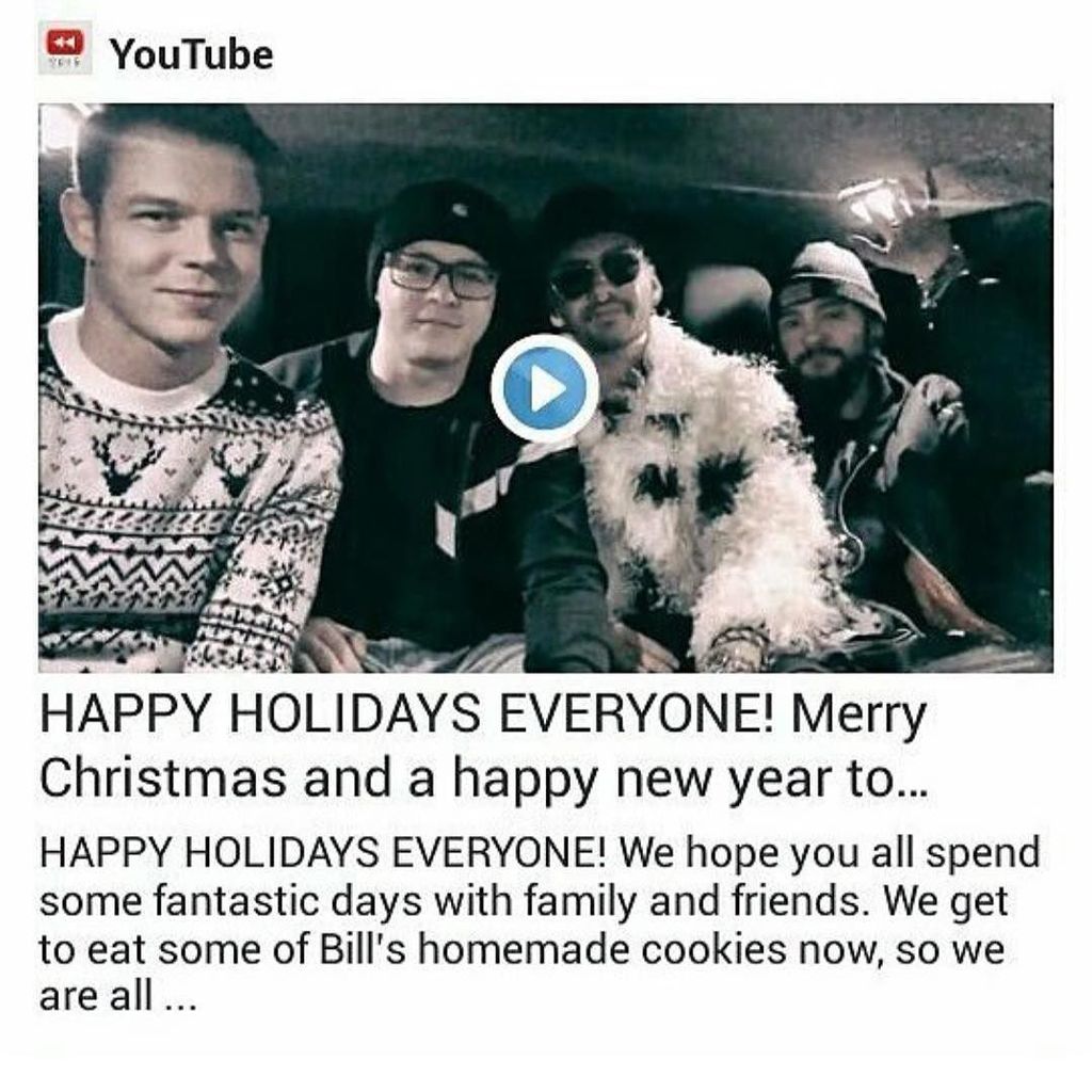 Bill: Oi galera, tudo bem? Nós gostaríamos de mandar um pouco de amor para vocês e desejar boas festas e Feliz Natal! Esperamos que vocês tenham um ótimo dia com seus familiares e amigos. Nós estamos trabalhando em música nova e nos vemos no ano que vem! Feliz Ano Novo! Até mais! Gustav: Frohen Weihnachten! Tom: Feliz Páscoa! Georg: Tchau!