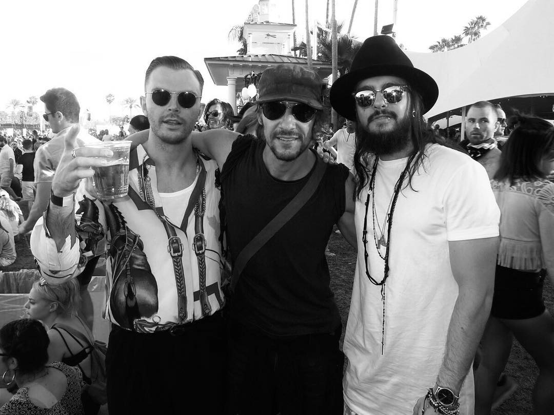 Tom com Theo, da banda Hurts, e Thomas Hayo, jurado do "Germany's Next Top Model" no Coachella - Los Angeles, EUA 17.04.2016